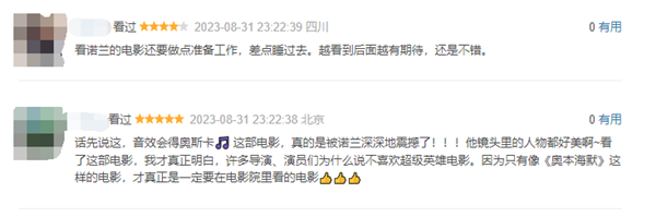 有观众看后评价道:太过冗长了,原子弹爆炸后的剧情应该砍去些。”看诺兰的电影还要做点准备工作,差点睡过去。越看到后面越有期待,还是不错。”