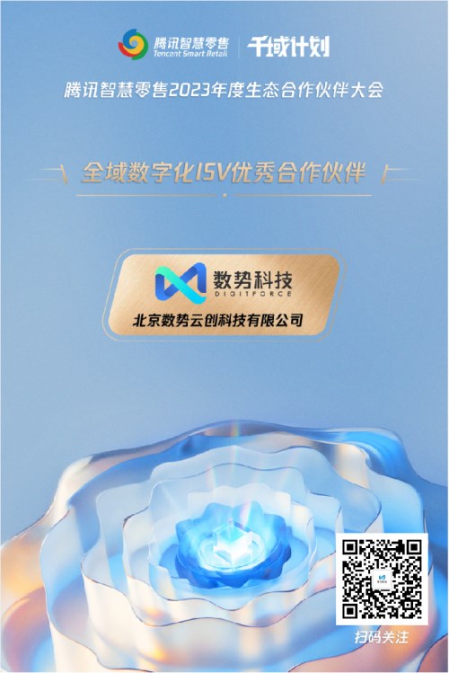 在今年,数势科技经过腾讯智慧零售的层层严格实践、考核和评估,凭借过硬的产品技术能力、卓越的交付服务力和私域运营领域行业的强大影响力,斩获“全域数字化ISV优秀合作伙伴”荣誉称号。