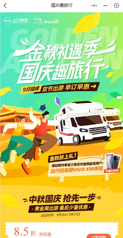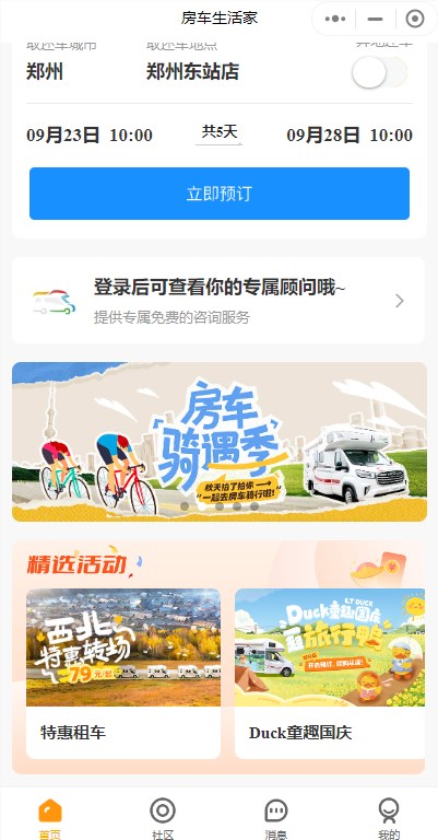 目前房车生活家租房车旅游还推出了很多福利产品,比如国庆西北专场,推出了国庆 5 天套餐、 6 天套餐以及 7 天套餐,并且还发放了优惠券,让大家自由选购。而西北转场特惠更是又回到 79 元起,看到这里,有没有很心动!好风景+房车舒适优质体验+超值优惠=国庆假期,怎么看都是稳赚不赔!嘿,是时候去旅行啦!