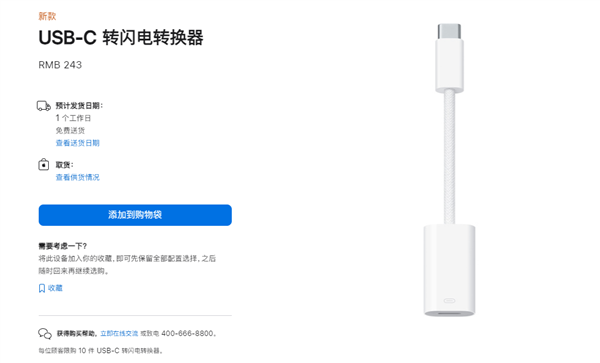 iPhone 15换成Type-C接口 苹果推243元转换器 Lightning线还能接着用