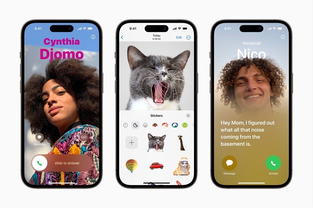 iOS17的电话app更新可自定义的联系人海报,可以使用照片和memoji进行自定义。iOS支持语音信箱实时转文字,可让用户通过文字内容决定是否接听电话。iOS17的信息app新增搜索过滤功能和未读信息箭头,可滑动快速引用消息,并添加平安到家功能,当用户想要通知家人或朋友他们已经安全到达目的地时,可自动检测用户位置及iPhone电量,让亲友更放心;新增贴纸功能,可将emoji、照片中提取的主体或拍摄的动态照片贴到信息中,并可添加特效。