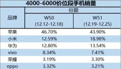 1月5日消息,据市场调研机构最新数据,在2022年W51(12月19日至12月25日)这段时间内,小米成功拿下4000元至6000元的价位手机的18.98%市场份额,夺得国产高端手机市场份额Top 1。小米13为此贡献不少。
