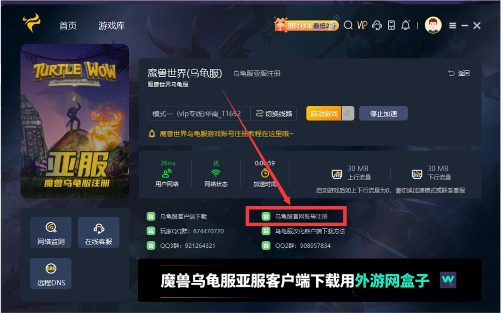 加速完成后,点击乌龟服官网账号注册,进入魔兽乌龟服官网
