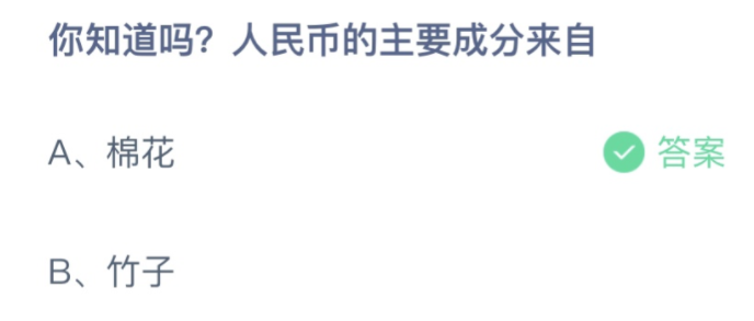 你知道吗人民币的主要成分来自?9月21日蚂蚁庄园今日答案