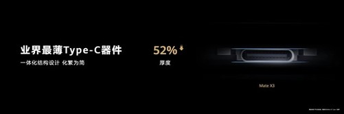 华为Mate X3也仅有5.3mm,为此华为还专门打造了特殊的Type-c接口,厚度降低52%。
