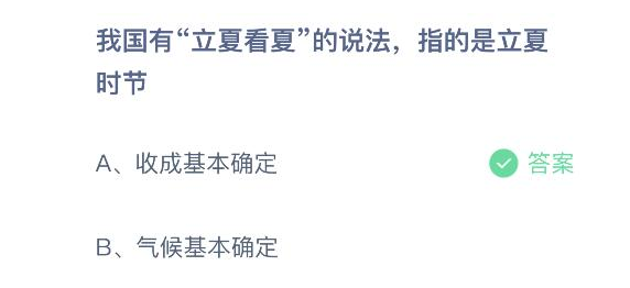 2023年5月6日,支付宝的蚂蚁庄园小课堂的问题是关于立夏的,问题是“我国有立夏看夏的说法指的是立夏时节什么?”这个自然是收成基本确定了,下面就来为大家分享一下蚂蚁庄园最新答案。
