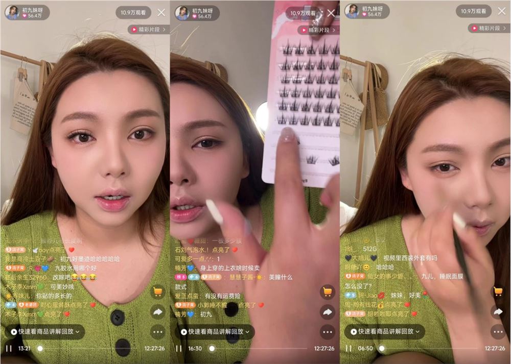 “那时候为了拍一个视频,一天要化七八遍妆,效果不好就重化。”每天坚持更新、结合当下热点不断设计特色妆容,初九妹的美妆、仿妆视频逐渐收获了更多人的关注。积攒下一定粉丝后,初九妹开始直播带货,种草彩妆产品。