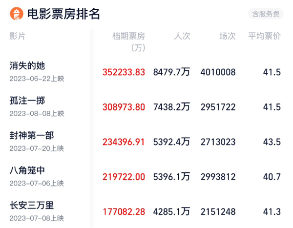 虽然目前《消失的她》位列票房第一,但《孤注一掷》追赶非常迅猛,距离35亿票房越来越近,大概率在暑期档结束之前就会超过前者,拿下暑期档票房冠军。