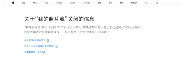 从苹果官网获悉,苹果我的照片流”服务今日正式关闭,我的照片流”中将不再保留任何照片。