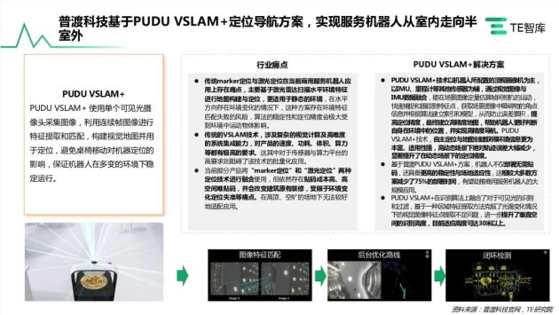 掌握核心技术的厂商在未来的发展中更有可能突破服务机器人现有能力的局限,拓展新服务场景。在技术方面,普渡科技四大核心零部件全部自主研发,并实现了移动机器人的全栈算法自研,包括PUDU OS、PUDU Open Platform、PUDU VSLAM+等。例如,PUDU VSLAM+ 解决了“定位”这一行业痛点,实现了服务机器人从室内走向半室外。