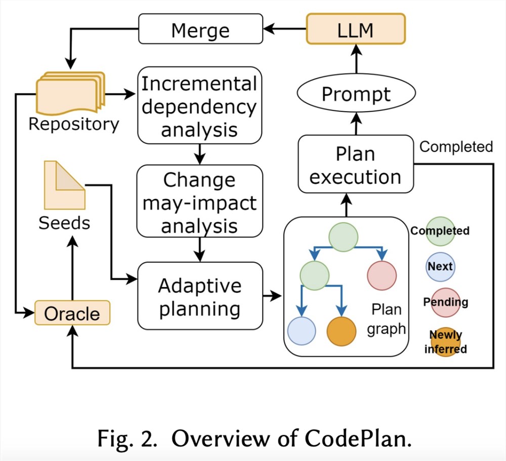CodePlan综合了一个多步骤的编辑链(计划) ,其中每一步都会调用代码位置上的LLM。该代码位置上的上下文来自整个存储库、以前的代码更改和特定于任务的指令。