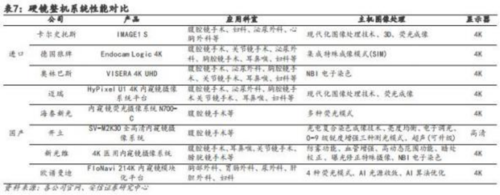 在我国超过 30 年的医用内镜发展历史中,国产公司已取得了长足的进步 ,头部企业在部分医用内窥镜细分领域同时实现了质和量的突破 ,在图像清晰度、色彩还原度等核心性能指标上逐渐赶上进口厂商的中高端产品,从上游的关键零部件、 中游的整机设备生产至下游的产品品牌均逐渐占据一定比例。