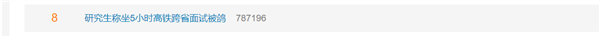 此事在网上曝光后,话题 研究生称坐5小时高铁跨省面试被鸽”登上了微博热搜,引起很多网友关注。
