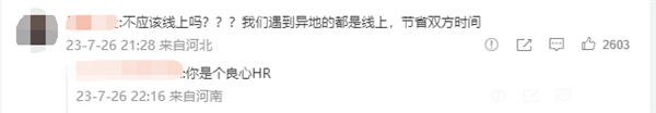 有网友表示:不应该线上吗???我们遇到异地的都是线上,节省双方时间”从评论来看,该网友应该是HR岗位,不少人为她点赞称你是个良心HR”遇上你们这样的HR成不成心里都是暖的”。