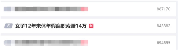 9月19日消息,微博话题#女子12年未休年假离职索赔14万”上了热搜榜。据媒体报道,小谢入职某公司因无故调岗等原因,其被迫离职。