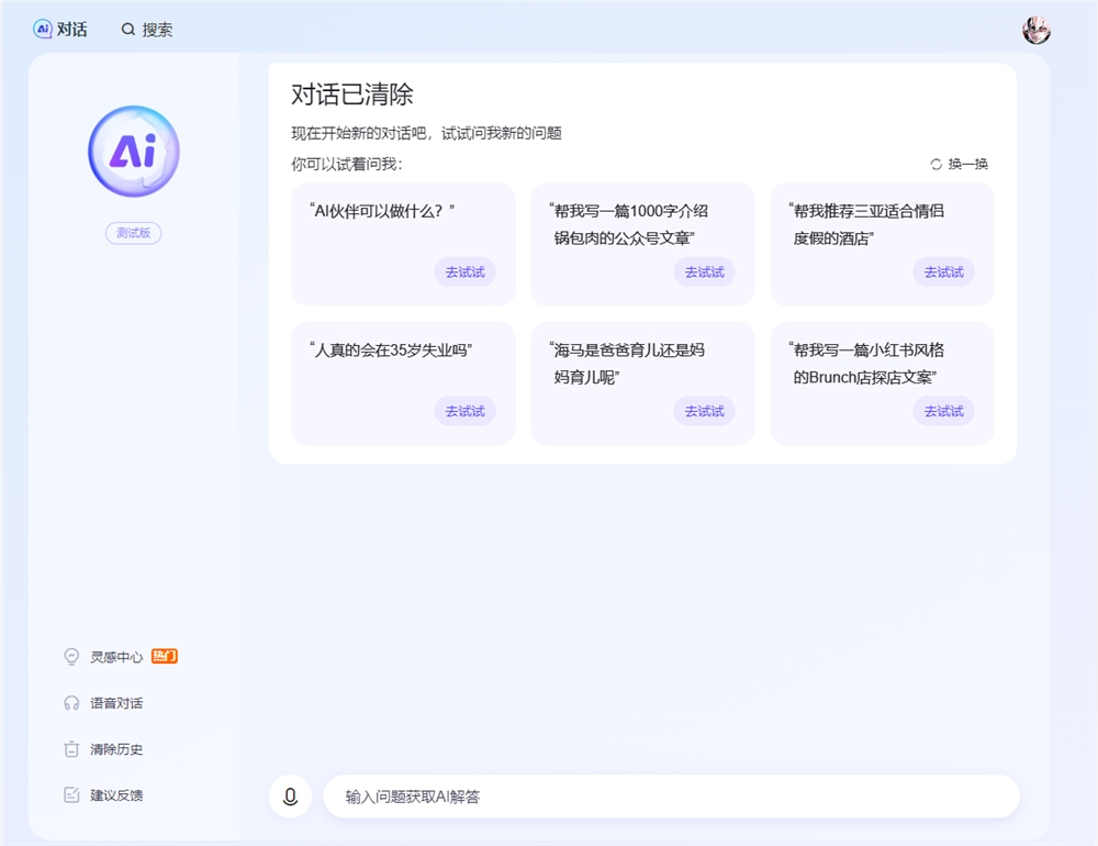 而“AI伙伴”以对话界面的形式展现,可以回答问题、生成应用文案,还能总结文档等。