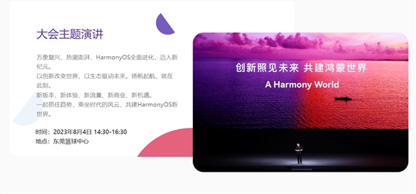目前,华为已在官网公布了今年开发者大会日历,包括鸿蒙OS4发布会和主题演讲的时间,以及大会嘉宾阵容等。