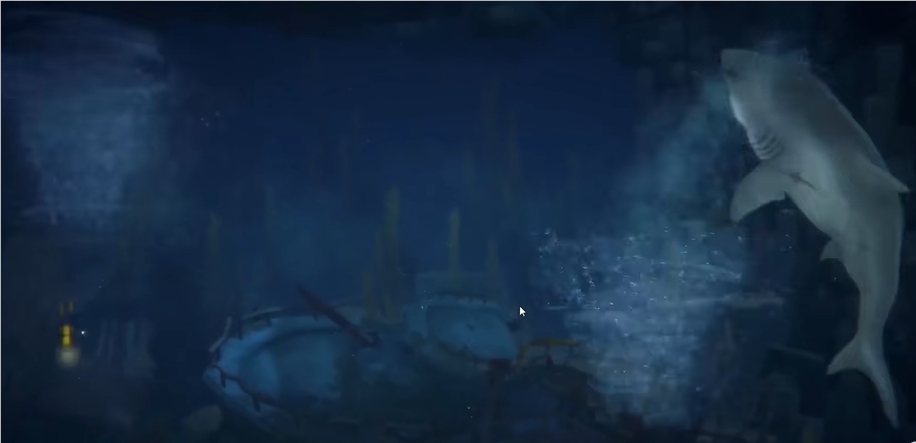 大白鲨的位置其实就在漩涡中,这一任务在剧情进行时会自动触发。值得注意的是大白鲨主要在晚上出现,因此玩家可以选择在晚上下海,游向右侧即可看到漩涡的位置。