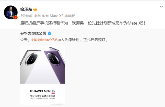 华为MateX5上线秒光,余承东:折屏手机还得看华为