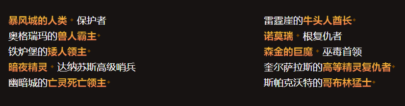 您必须杀死列为目标的玩家才能完成任务。群杀不算。上周荣誉击杀数最高的活跃玩家将成为对方阵营的赏金目标!部落和联盟的目标将每周三更新。每个目标的探索都是不可重复的。