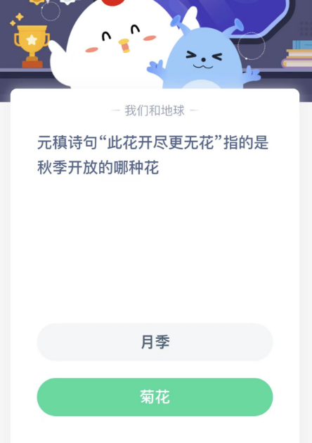 元稹诗句“此花开尽更无花”指的是秋季开放的哪种花?这是10月7日蚂蚁庄园的最新问题,那么正确答案是什么呢?各位小伙伴请接着往下看。