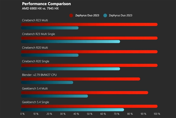 另外,7945HX对比上代6900HX,性能提升了多达27%,而在去年6900HX相比于12900HX要落后多达14.7%。
