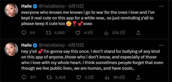 日前,饰演小美人鱼爱丽儿的演员哈莉贝利发声称自己反对霸凌,她表示:我不支持在推特上对任何人进行任何形式的霸凌包括那些我不认识的人,即使我们过着公共生活,但我们仍然是有灵魂的人”