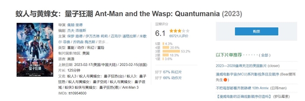 目前《蚁人3》口碑不断走低,豆瓣评分也只有6.1分,烂番茄新鲜度从63%跌到48%。除了在美国本土,《蚁人3》在提前上映的法国评价也不理想,Allocine网站打出2.4分(5星满分)。