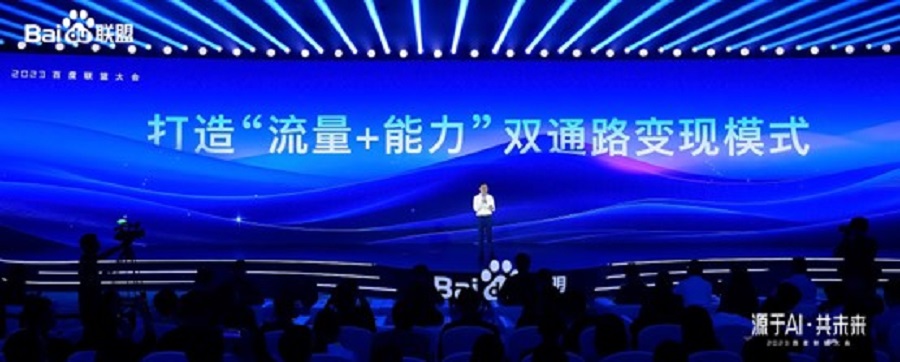 9 月 13 日, 2023 百度联盟大会在武汉召开,百度集团副总裁、移动生态商业体系负责人、百度联盟总经理王凤阳发布百度联盟面向开发者推出的AI组件商店,为合作伙伴提供AI Native开发的支持、配套的商业化能力、应用培训三大服务。