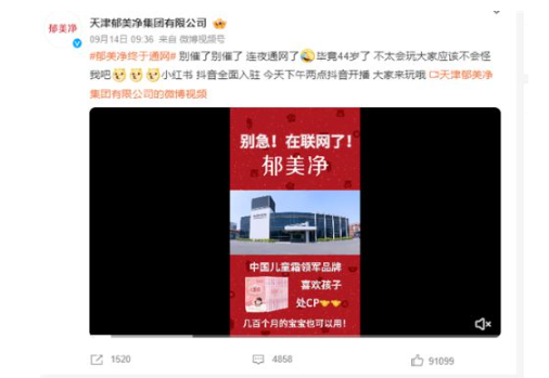 在中国国货品牌热潮中,天津老牌国货品牌“郁美净”最近注册了社交媒体账号,引起了网友的关注。郁美净官方微博宣布将在抖音开播,并宣布进入社交媒体领域。该举动受到了许多人的欢迎,尤其是那些认为郁美净是天津的老品牌的人。