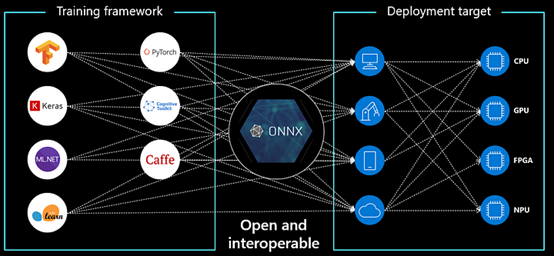 该格式由微软、Facebook等科技巨头共同开发而成,旨在简化人工智能模型的开发和部署过程。ONNX支持多种深度学习框架,例如,PyTorch、TensorFlow、Caffe2、MXNet等。