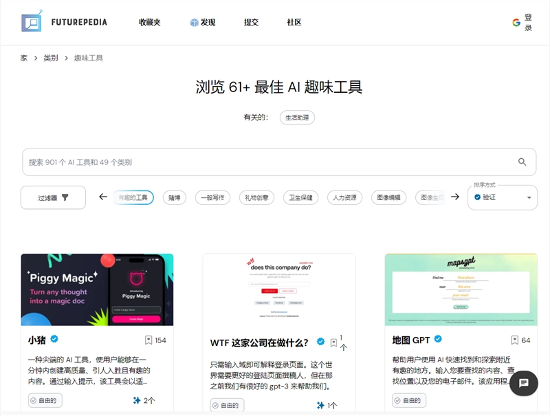 未来ai百科网站网址:https://www.futurepedia.io/ai-tools/fun-tools