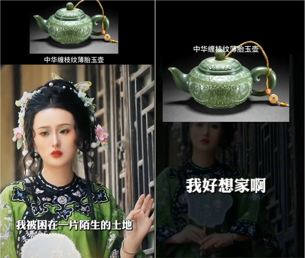以第 一个心愿为例,她表达心愿的方式也别具一格:身穿具有“中华缠枝纹薄胎玉壶”元素的汉服,以流失文物自白的口吻,诉说自己“想要回家”的心愿,万千网友为之动容,许多网友评论“遇见这样的视频我一定要点赞,生怕以后不给我推了”。