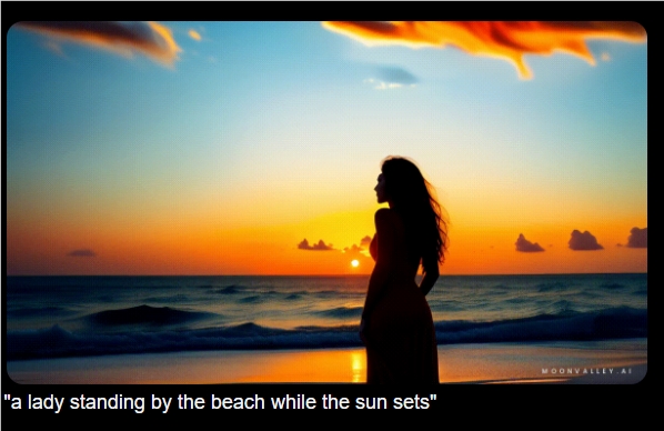 输入"一个女孩站在海边看夕阳" ,Moonvalley便可生成金色阳光下女孩凝视远方的美丽画面。用户还可以描绘奇幻生物、未来世界等场景,Moonvalley都能将其生动可靠地呈现出来。