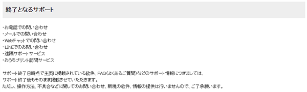 在支持结束之后发布的软件,常见问题解答 (常见问题) 也会直接刊登在官网上,但不提供有关操作方法、问题等、新软件或信息的咨询。