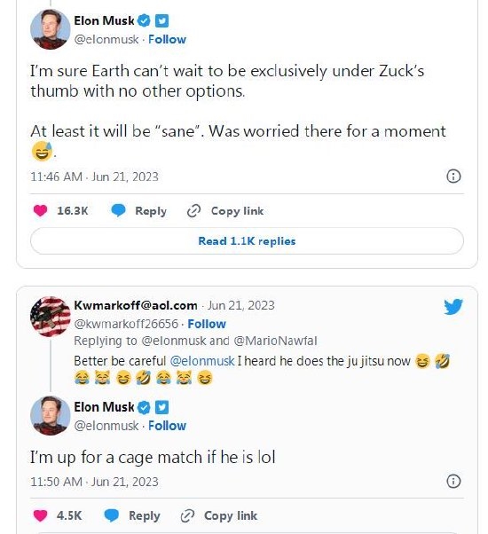 同时该媒体表示:无论谁会赢得这场比赛,我们都可以认同这场马斯克对阵扎克伯格的比赛将是有史以来最有趣的一场,它需要发生,现在不要退缩,上吧马斯克!