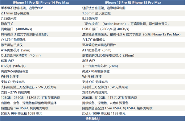 以下是iPhone15Pro、iPhone15Pro Max相比Phone14Pro、iPhone14Pro Max的21项可信变化: