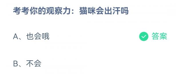 考考你的观察力猫咪会出汗吗 3月3日蚂蚁庄园今日答案