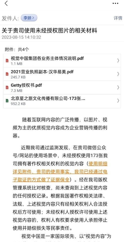真的是离谱了!今天收到了 @视觉中国 打来的电话,说我的公众号侵权使用了他们173张照片,还要赔偿他们8万多元!