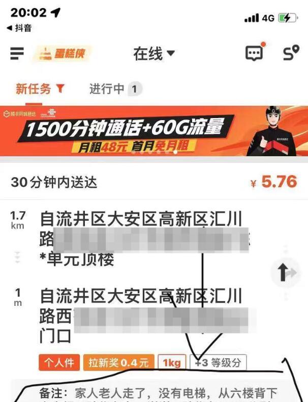 该事件引起了不少网友的关注和热议。另外,还有一张疑似聊天记录的图片显示,一名自称是顺丰骑手的人讲述了整个接单和配送过程,但该图片的真实性有待证实。