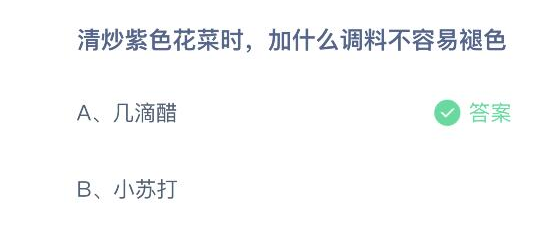 清炒紫色花菜时加什么调料不容易褪色 6月28日蚂蚁庄园今日答案