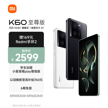 至尊版 天玑9200+ 独显芯片X7 1.5K直屏 索尼IMX800 光学防抖 12GB+256GB 墨羽 小米红米K60 Ultra 京东自营 ¥2599 去购买