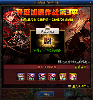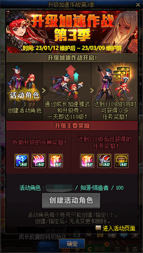 在活动角色达到Lv100后,就可以参加新的提升任务,根据完成的任务,就可以得到更多的活动奖励。