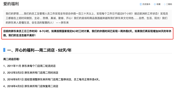 胖东来对此表示,公司的梦想是员工及管理人员工作实现全年综合休假130天以上,每天工作不超过6个小时,接近欧洲的工作状态。