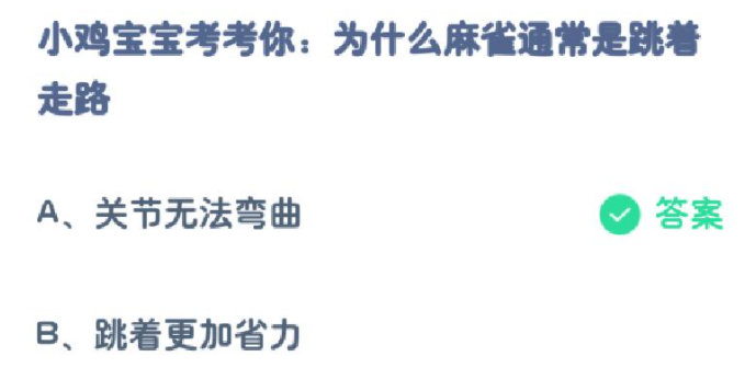 为什么麻雀通常是跳着走路?10月7日蚂蚁庄园今日答案
