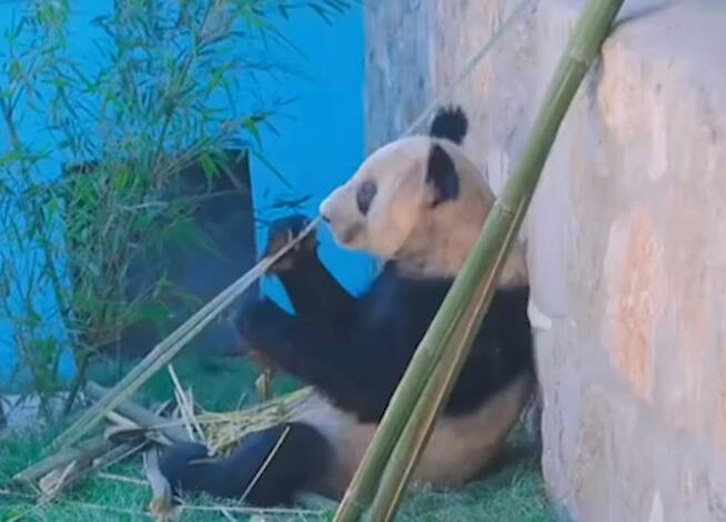 6月6日,北京动物园发布了“丫丫”的最新视频,视频中“丫丫”抓起竹子就开始咀嚼了。