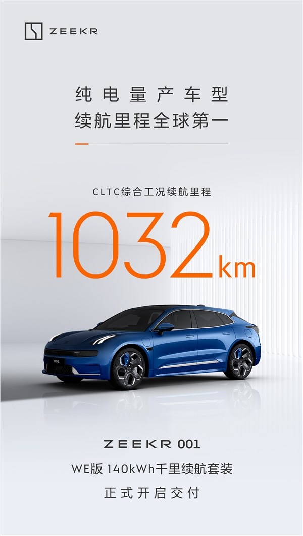 1032km续航全球量产车!极氪001千里续航套装版开启交付