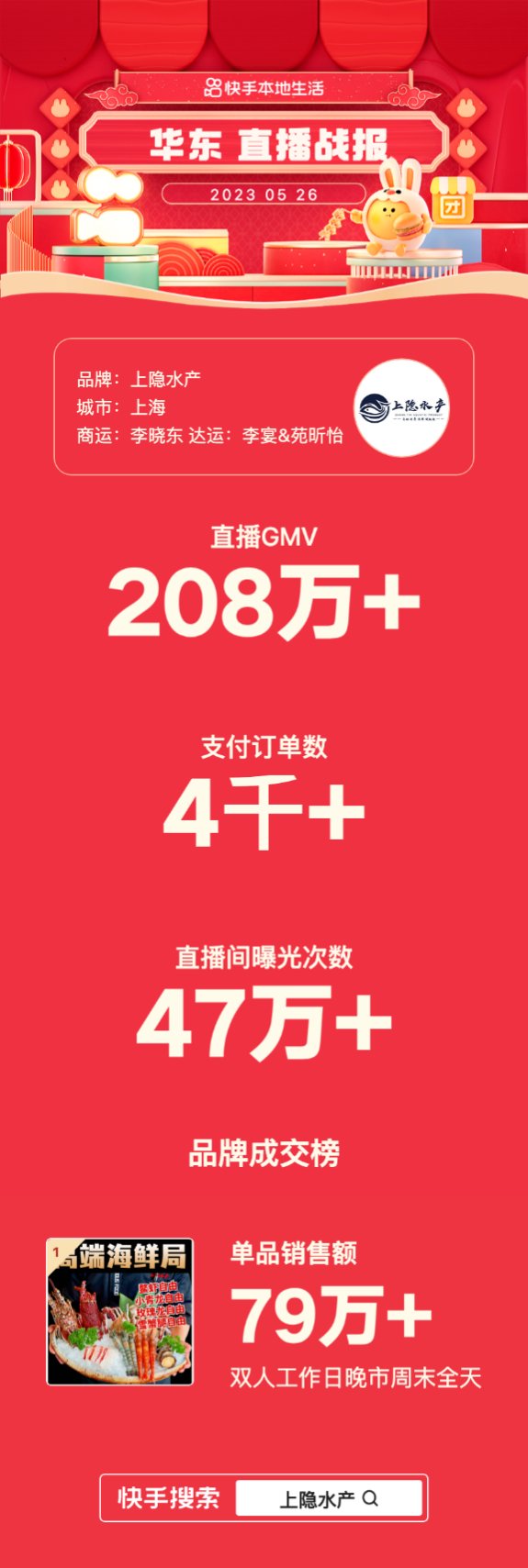 而眼见着本地生活内玩家不断涌入,流量红海随之而来,上隐水产作为“老玩家”,也难免陷入存量市场下营销增长难的困局。此时,快手本地生活赛道的开放,让上隐水产看到新蓝海的突破机遇。