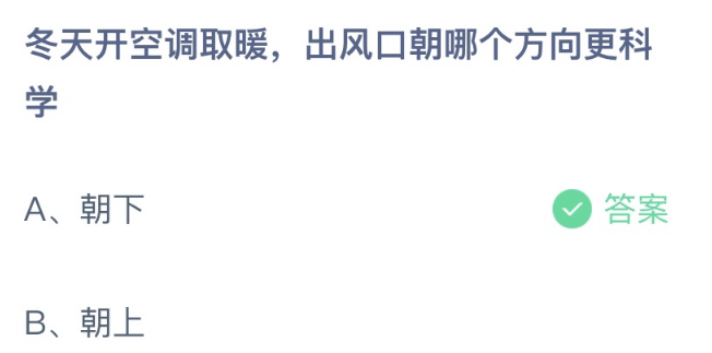 冬天开空调取暖出风口朝哪个方向更科学 2月2日蚂蚁庄园今日答案