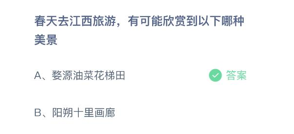 春天去江西旅游可能欣赏到以下哪种美景 3.10蚂蚁庄园答案